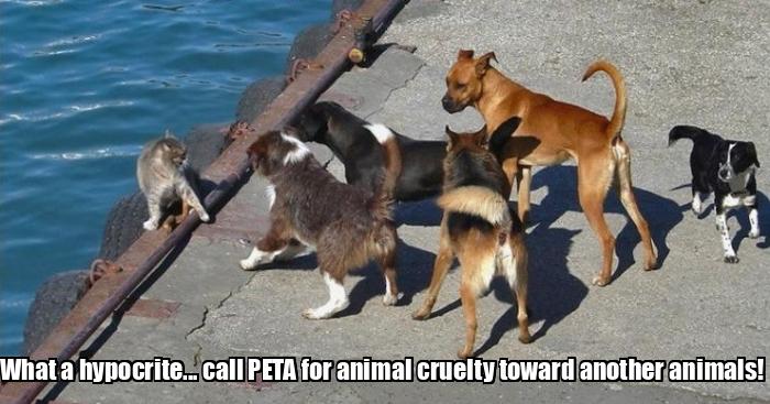 Funny Pictures With Captions A Cat Is Cornered By 5 Dogs